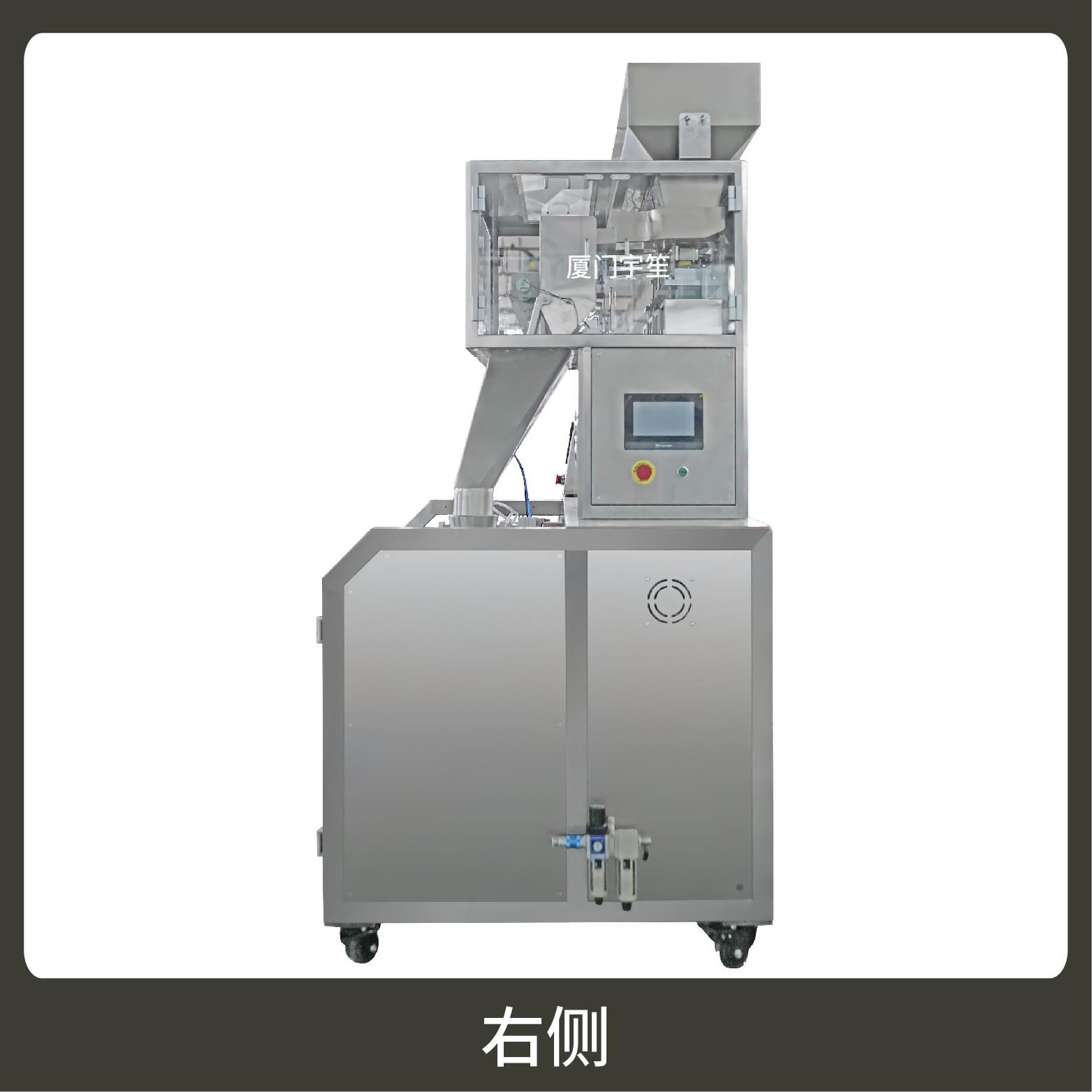 2、用于自封袋、站立袋、拉鏈袋,可抽真空、充氮?dú)狻0b流程全自動,無需人工操作??筛鶕?jù)充填物料的性質(zhì)選配不同的下料結(jié)構(gòu),且可根據(jù)客戶要求配置打印批號等功能。