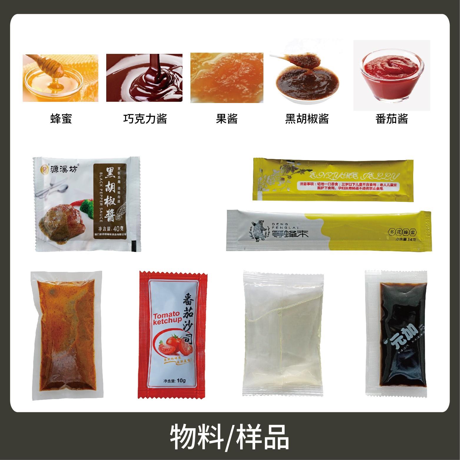適用于食品行業(yè)顆粒、粉劑、液體、醬料等物料的計量包裝。
