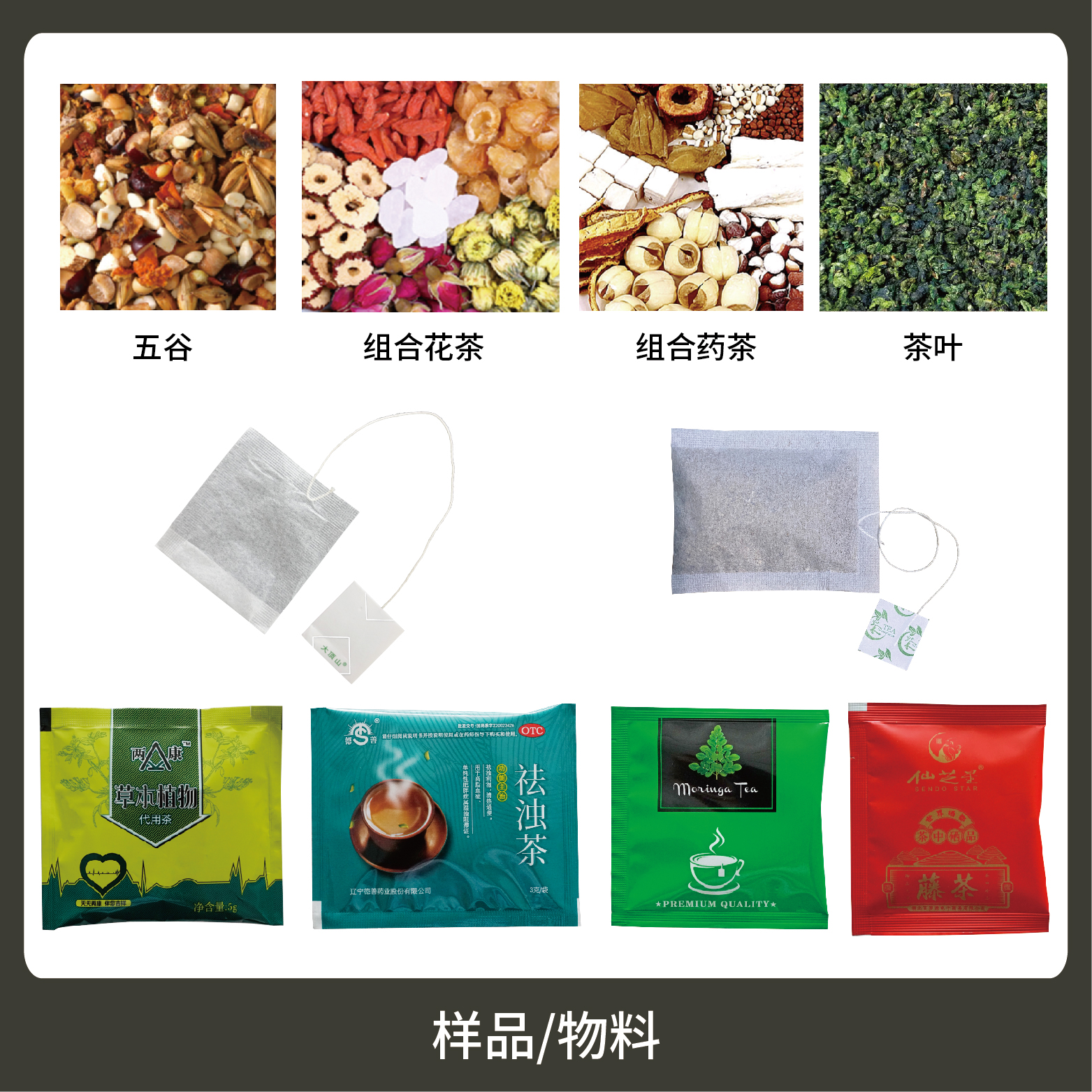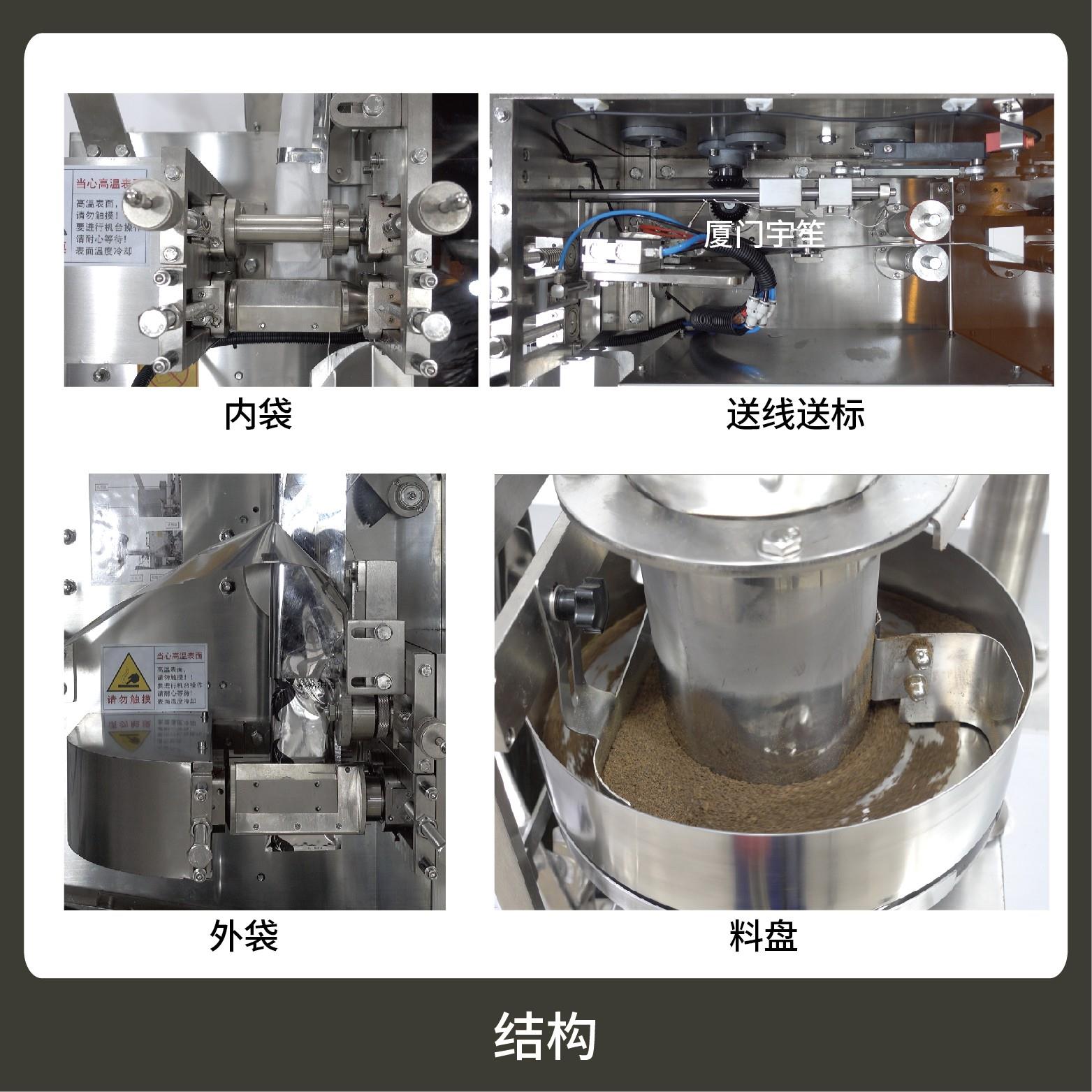 適用于茶葉、藥茶、保健茶草根類等小顆粒物的內外袋一次性包裝。